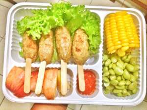 Sayur dan buah-buahan tentu wajib disuguhkan, bagian dari 4 sehat 5 sempurna. Sayurnya ada yang direbus, namun ada pula yang ditumis. Untuk daging ayamnya, ia memastikan bahwa hanyalah dada ayam yang digunakan, karena minim lemak. Semua menu makanan itu, ia tata sedemikian rupa di dalam wadah bekal plastik premium.